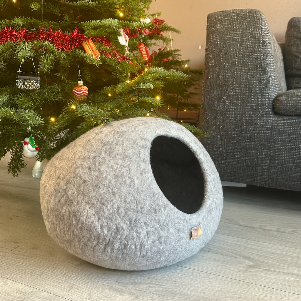 – De dikke, compacte wol dempt geluiden en creëert een rustige, prikkelarme omgeving — perfect voor katten die snel stress ervaren.