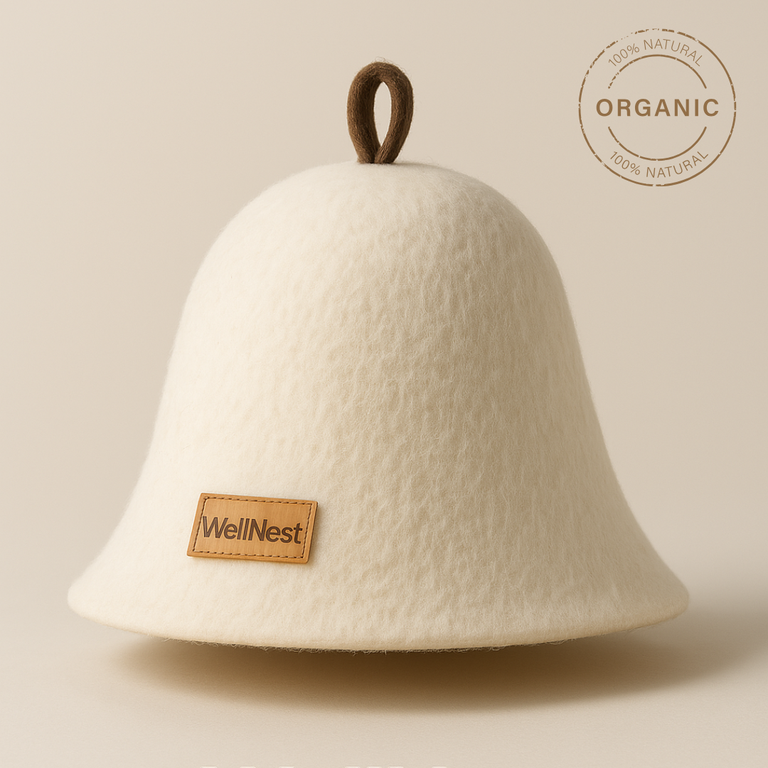 De WellNest® saunahoed is meer dan een accessoire. Het is een functioneel en wetenschappelijk doordacht wellness-instrument dat warmte reguleert, huid en haar beschermt, de sauna-ervaring verdiept en helpt om het lichaam in balans te houden. Wie eenmaal met een kwaliteitsvolle vilten hoed sauna bezoekt, wil meestal nooit meer zonder.